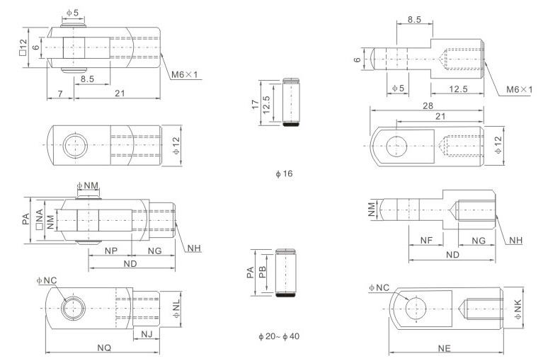 | 20 | 16 | 8 | 30 | 40 | 11 | 15 | M8*1.25 | 10 | 16 | 14 | 8 | 8 | 15 | 40 | 21 | 16.5 |