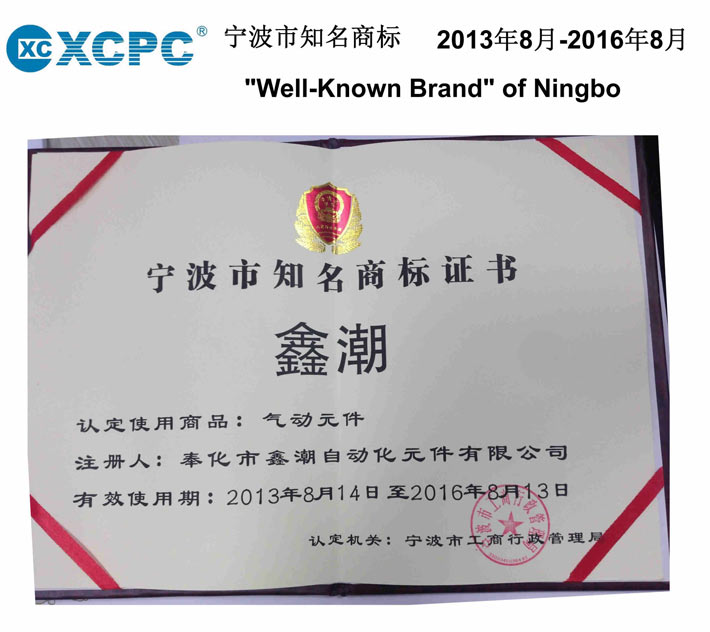 鑫潮氣動(dòng)(XCPC Pneumatic)獲得了寧波市知名商標(biāo)
